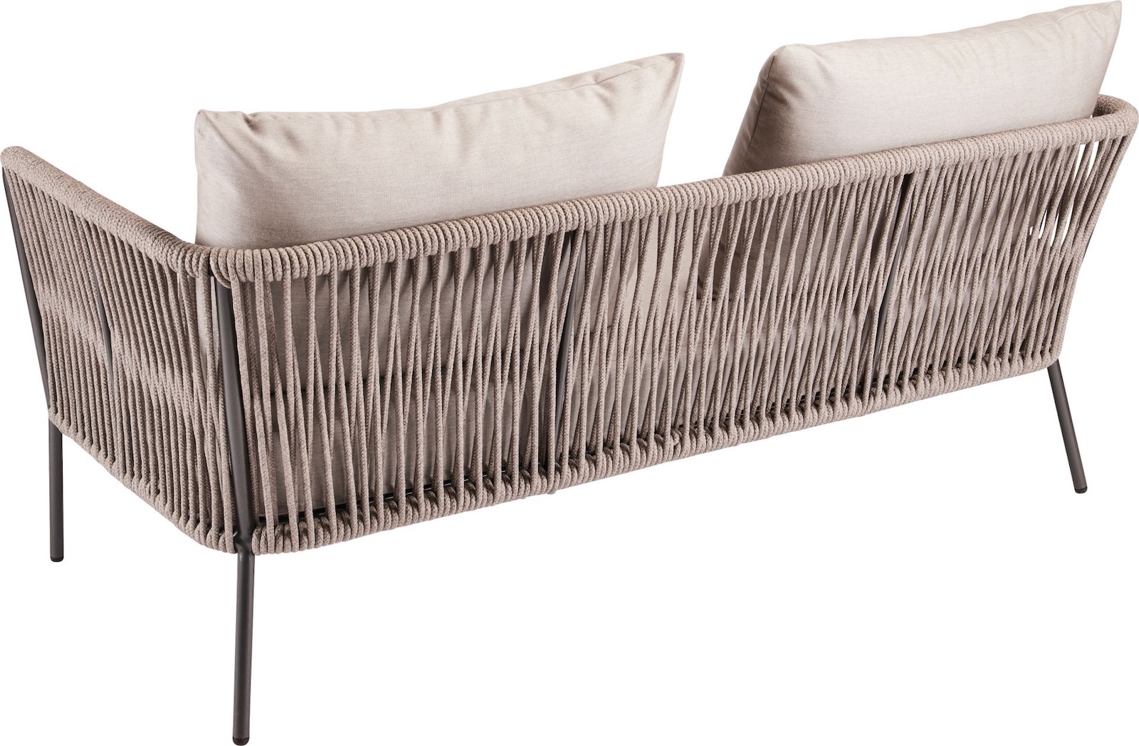 Das elegante 2-Sitzer Lounge-Sofa Marla kombiniert modernes Outdoor-Design mit maximalem Komfort und hoher Materialqualität. Das robuste Gestell aus Aluminium in anthrazit ist wetterfest, langlebig und überzeugt durch seine klare, moderne Optik. Die Rückenfläche besteht aus einer dekorativen Kordelverarbeitung (salt), die dem Sofa seinen einzigartigen und hochwertigen Look verleiht.