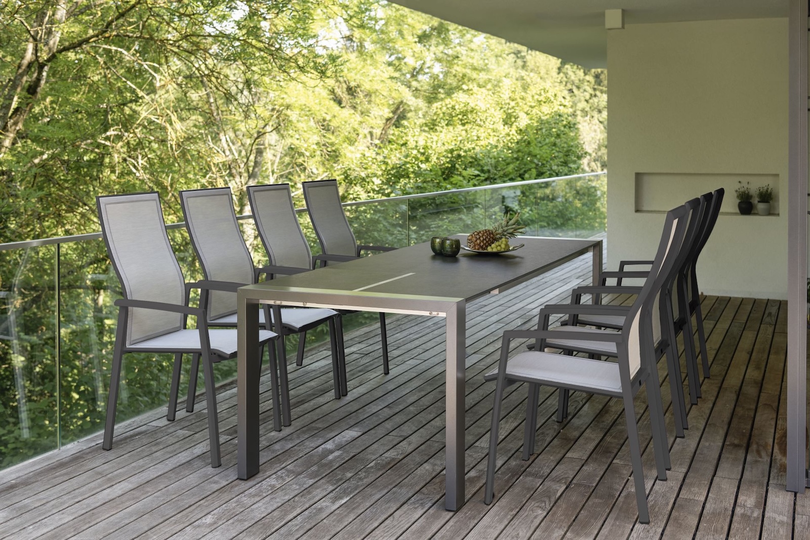Stern Stapelsessel Kari Aluminium anthrazit/Textilen silber hohe Rückenlehne Gartenstuhl Stapelstuhl