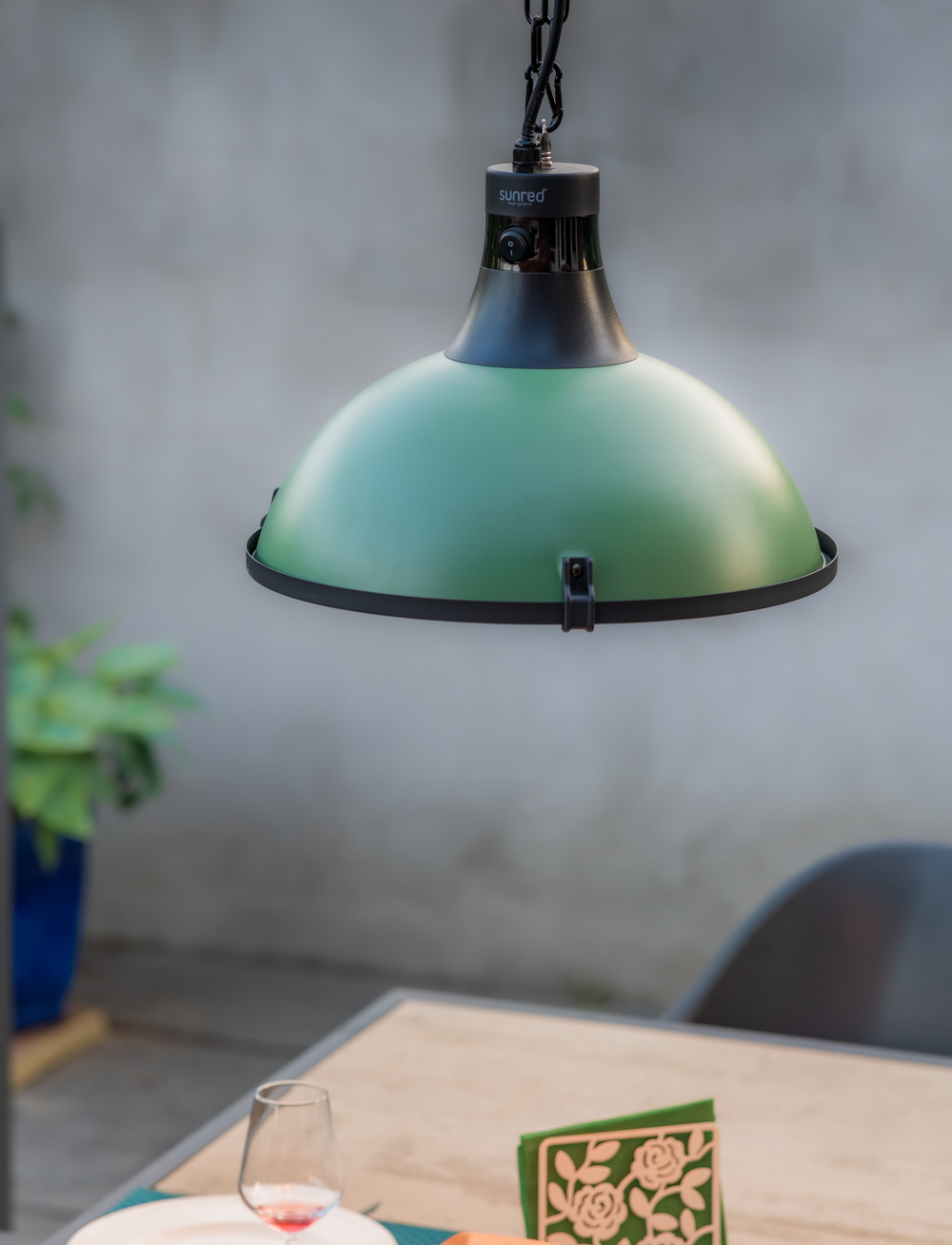 Die SUNRED® Indus Ultra Hanging Jade Green 2.100 Terrassenheizung vereint Stil, Leistung und Komfort. Erleben Sie unvergessliche Abende im Freien und holen Sie sich noch heute diese einzigartige Terrassenheizung!